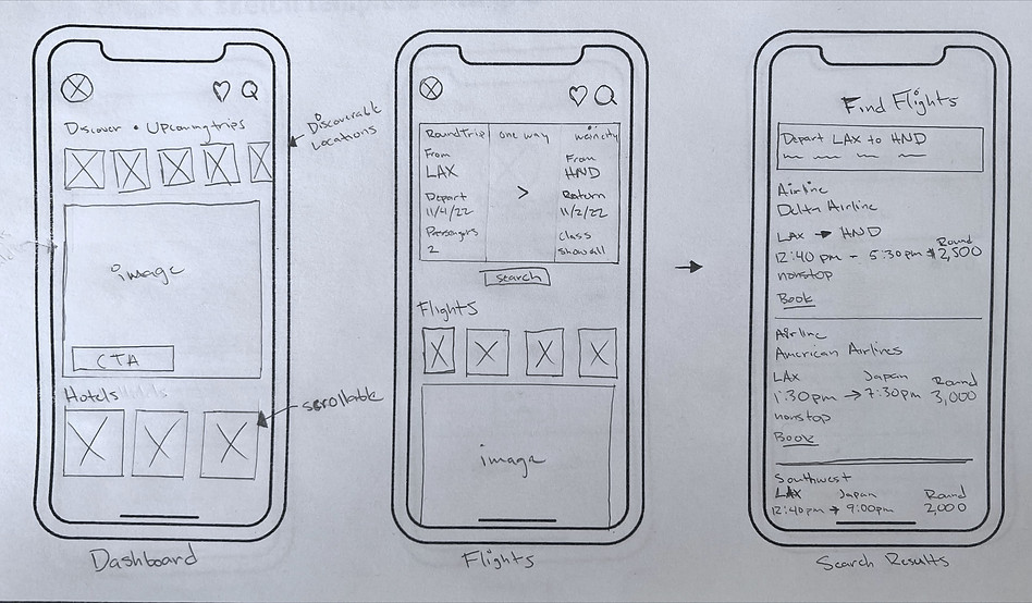 During the ideate phase, the feedback I received from sketching the screens first was vital to my process because it allowed me to validate my design choices before moving on to high fidelity. Although users don't perceive user experiences as sketches or in black and white it was important to gather feedback early on because it forced the user to focus their feedback on functionality rather than color and images.